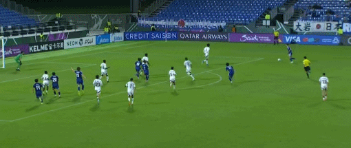 第80分钟,哈桑出球失误,佐藤龙之介低射破门,U23日本2-0卡塔尔U23