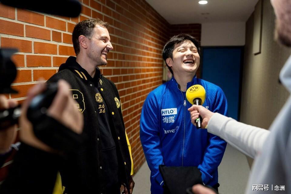 德甲豪门多特蒙德也因为樊振东而改变了一条“禁令”。众所周知,在足球领域,多特和沙尔克04是鲁尔区德比死敌,所以无论是足球,还是乒乓球,原则上蓝色球衣是不能进入多特蒙德的更衣室的。